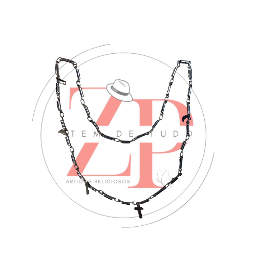 Uma peça de poder e respeito espiritual feita para acompanhar seus caminhos na fé. Este guia/colar de aço combina durabilidade com simbolismo, sendo ideal para quem busca um item resistente para suas práticas na Umbanda.